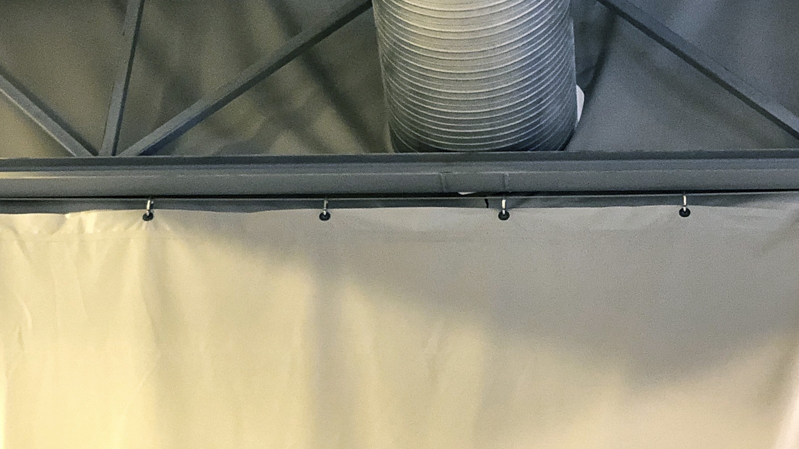 Skilleveggen festes til taket med en festelist, skinner eller wire og kroker. For gulv sikres den med opphengs- eller forankringsvekter.